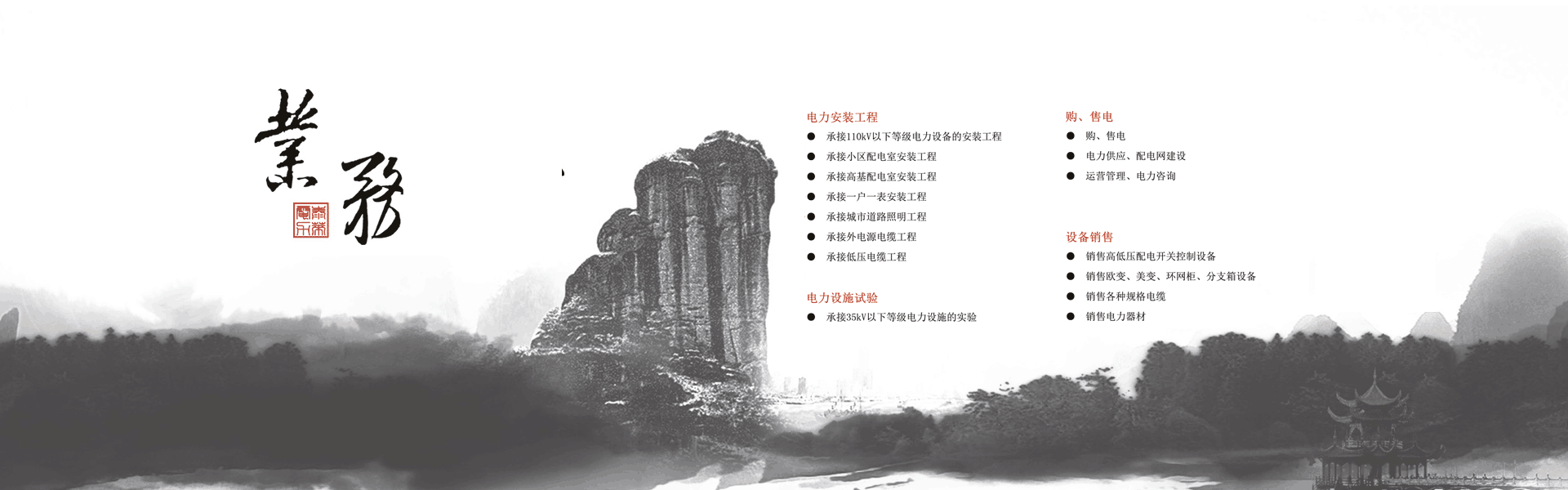 已經形成了集高、低壓電力工程設計、安裝 、維護、試驗和購、售電為一體的專業電力施工及購售電企業。
